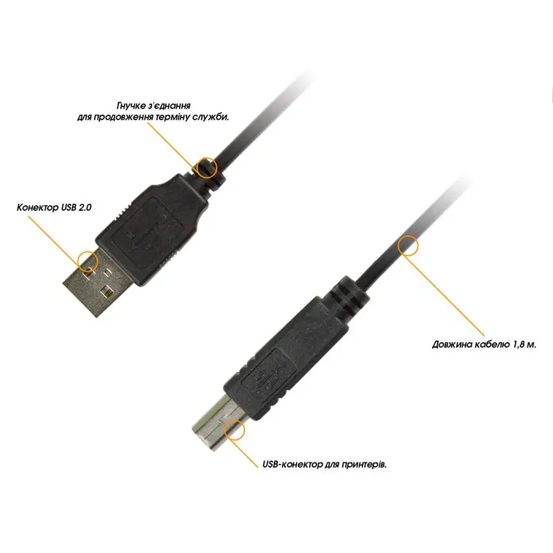 Кабель Piko зі штекерами USB type A — USB type B дає змогу підключати стандартну USB-периферію (принтери, сканери тощо) до комп’ютерів, смартфонів і планшетів.