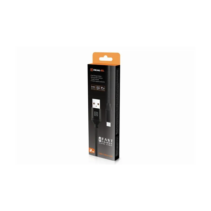 Кабель REAL-EL Premium Fabric USB - micro USB (M/M), 2 м, Black (EL123500048)