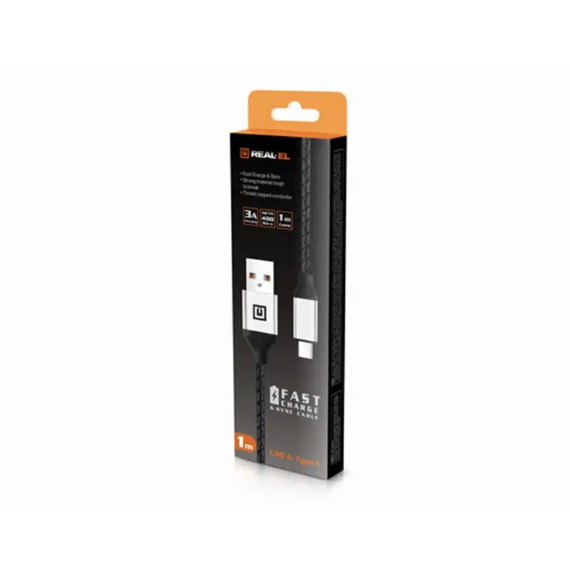 Кабель REAL-EL Premium Leather USB - USB Type-C (M/M), 1 м, Black (EL123500049)