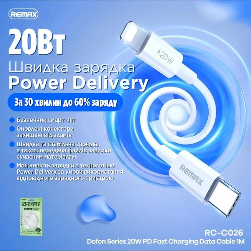 Кабель Remax Dofon USB Type-C-Lightning, 1м White (RC-C026)