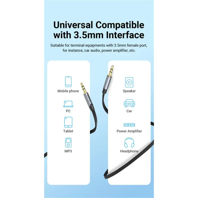 Завдяки надзвичайно широкому використанню роз’єму типу mini-jack 3.5 мм, цей кабель можна застосовувати для роботи з переважною більшістю ґаджетів, орієнтованих на роботу зі звуком. Аудіокабель Vention Audio 3.5 мм Flat — якісний і незамінний аксесуар для власників аудіопристроїв, обладнаних популярним роз’ємом 3.5 мм mini-jack. Завдяки його популярності та широкому застосуванню, цей кабель сумісний із величезною кількістю пристроїв: від смартфонів до автомагнітол. Його литий конектор спеціальної форми й еластичний TPE матеріал забезпечують довголітню експлуатацію, а дріт, виготовлений із безкисневої міді, сприяє передаванню високої якості звуку. Особливості: Висока якість звуку Кабель сумісний із пристроями, обладнаними роз’ємом 3.5 мм mini-jack Безкисневий мідний кабель Литий конектор спеціальної форми Еластичний TPE-матеріал