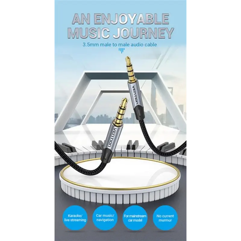Кабель Vention Audio 3.5 мм - 3.5 мм (M/M), 1 м, Metal Type, чорний/сріблястий (BAPHF)