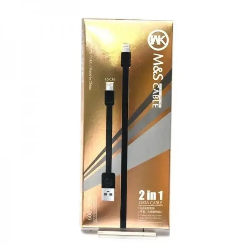 Wk M&S Apple подвійний кабель для передачі даних (WDC-009) Fashion Wire Master Інноваційний двосторонній концептуальний дизайн 1 HEAD для Apple Lighting та кабелю Micro Android. Кращий вибір для користувача Apple. По-справжньому проста концепція швидкого заряджання On-The-Go з плоским кабелем до 2,1 А, а також передача даних між пристроями, які сумісні з кабелем iPhone Lighting і Micro Android. WK - за 1 пакет поставляється з 2 кабелями - довжина 16 см та 100 см, щоб задовольнити вас один раз. Усередині 2 кабелі – довгий і короткий. Обидва є двостороннім кабелем, який може працювати на Iphone Lightning та Android Micro. Для IOS та Android 2 в 1, які використовують один і той же порт. І Lightning, і Micro USB в 1 порту. Швидка синхронізація, швидка зарядка та висока якість.
