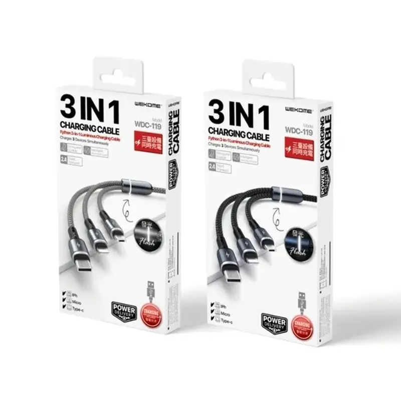 Кабель WK WDC-119 Fython 3-in-1 Lightning-МicroUSB-Type-C 1.2м чорний