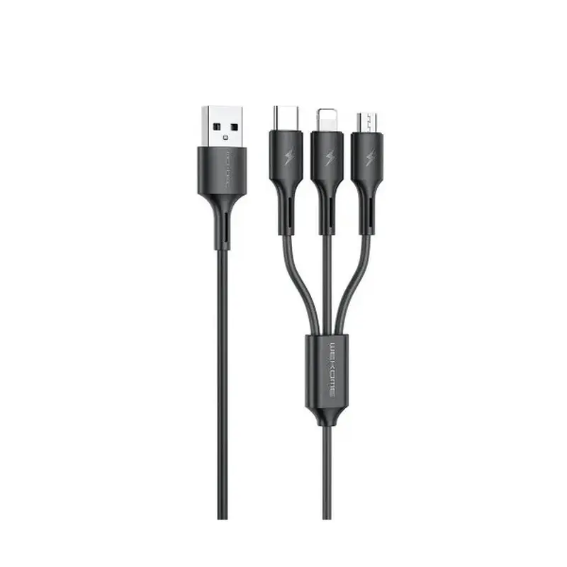 Кабель WK WDC-137 Upine Series 3-in-1 Lightning-МicroUSB-Type-C, 3А, 1.2м чорний