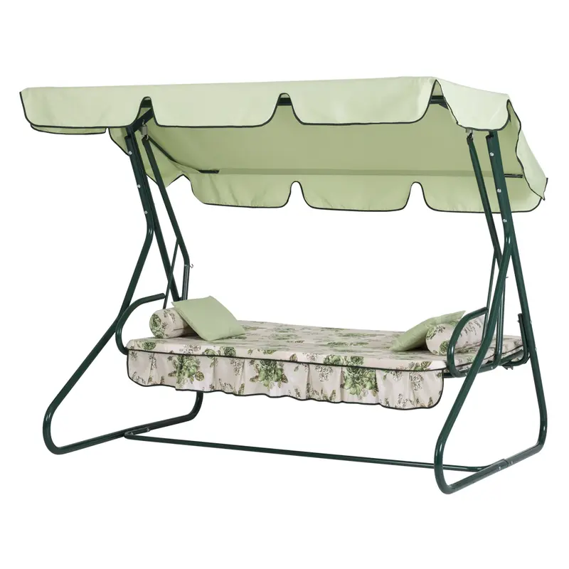 Главная задача и функция садовых качелей – это создание уютного уголка для отдыха на природе. Садовые качели от ТМ Витан под названием «Графиня» идеально подойдут для Вас. Каркас данной модели выполнен из стальных труб нескольких диаметров, основным из которых есть труба диаметром 38мм. Основа сиденья пружинный блок, оригинальность состоит в том, что выполнен этот блок методом плетения металлической проволоки, что обеспечивает надежность и удобство при сидении.