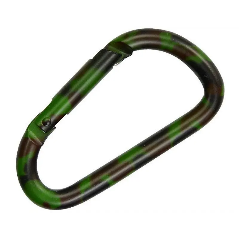 Алюминиевый карабин с лесным камуфляжем. Идеально подходит для ключей, ремня и т. д. Размер: 75 мм. Не для скалолазания.