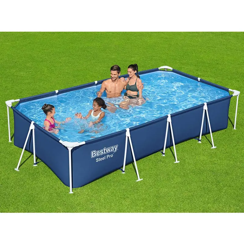 Простий і зручний басейн Bestway 56405 серії Steel Pro - це відмінний варіант басейну, розрахований на купання сім'ї з 3-5 осіб, з дітьми віком від 4 років.Чаша басейну виконана з тришарового армованого лайнера. Покриття Framelink захищає каркас від іржі, гарантує високу надійність і довговічність всієї конструкції.Відсутність зайвих елементів, легкість і швидкість збірки, що не вимагає додаткового інструменту, виділяє цю модель на ринку домашніх наземних басейнів.