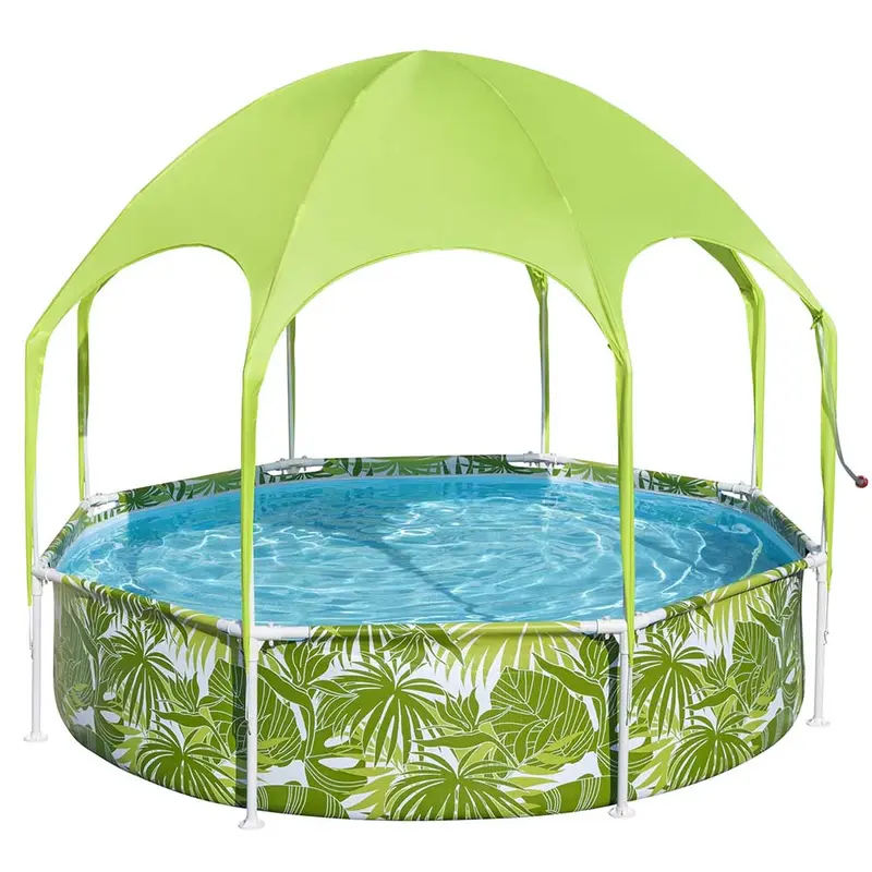 Дитячий басейн Bestway 56432 - це універсальна модель басейну для дітей від 3-х років. Сам каркас виготовлений з металевих труб, а чаша з ПВХ підвищеної міцності. Навіс моделі виконаний зі спеціального відбиває полімеру. Під куполом тенту розташований водяний розпилювач, який допоможе освіжитися в особливо жаркий день. Збірка Bestway 56432 не вимагає великих зусиль, а невеликі габарити дозволять встановлювати його на будь-який прибудинкової території. Клас: каркасний дитячий басейнРозміри: діаметр 244 см, висота 51 смОб`єм басейну (90%): 1688 літрівВстановлення: тільки наземне