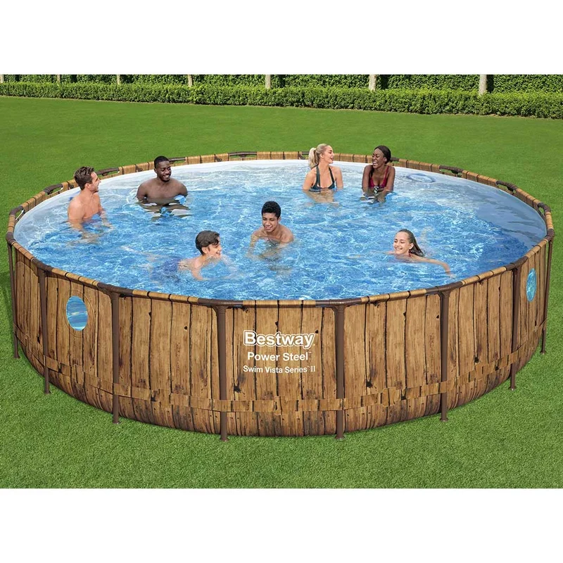 Каркасний басейн Bestway Дерево 56977 (549х122 см) з картриджним фільтром, драбиною та захисним тентом