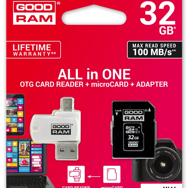 Карта пам`ятi MicroSDHC 32GB UHS-I Class 10 GOODRAM + SD-adapter + OTG Card reader (M1A4-0320R12)