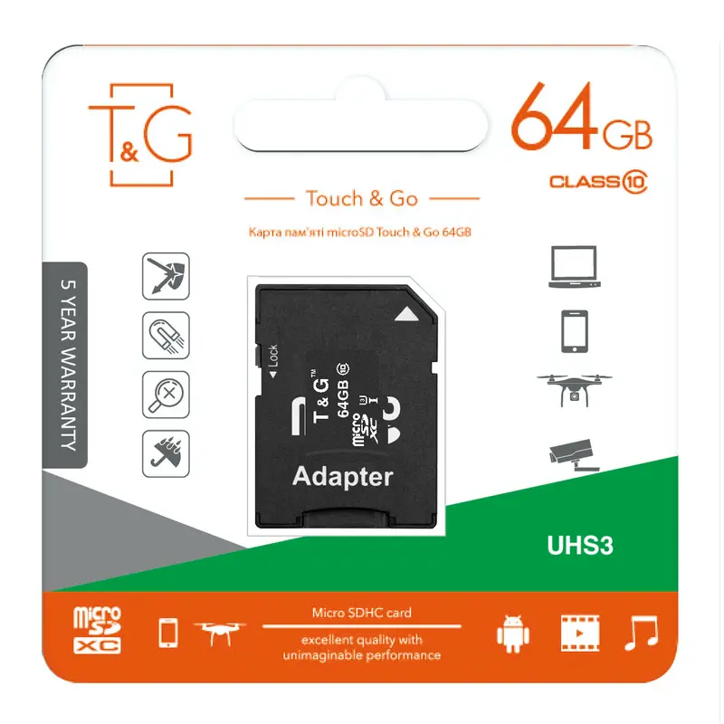 Карта пам`ятi MicroSDXC 64GB UHS-I U3 Class 10 T&G + SD-adapter (TG-64GBSDU3CL10-01)