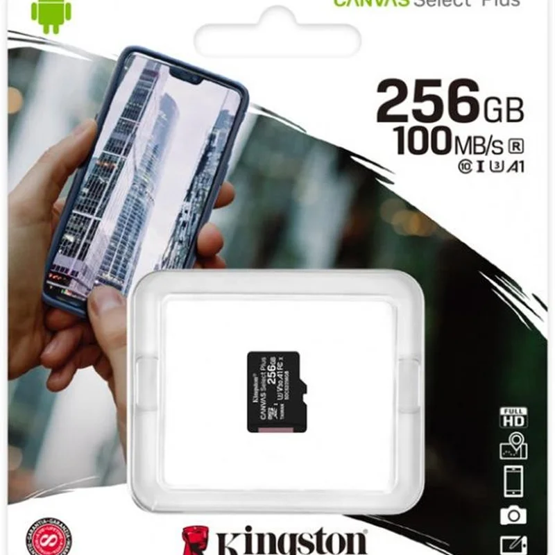 Карти пам’яті Canvas Select Plus microSD компанії Kingston сумісні з пристроями Android і мають продуктивність класу A1. Вони забезпечують більш високу швидкість і ємність, прискорюючи завантаження додатків. Виберіть для зберігання своїх фотографій і відео карту пам’яті підходящої ємності. Володіючи високою продуктивністю, швидкістю і міцністю, карти пам’яті Canvas Select Plus microSD забезпечать надійне виконання таких завдань, як створення і обробка фотографій високої роздільної здатності або зйомка і редагування відео в форматі Full HD. Карти пам’яті Kingston Canvas пройшли випробування на міцність в найсуворіших середовищах, тому їх сміливо можна брати куди завгодно з упевненістю, що ваші фотографії, відео та файли будуть в безпеці.
