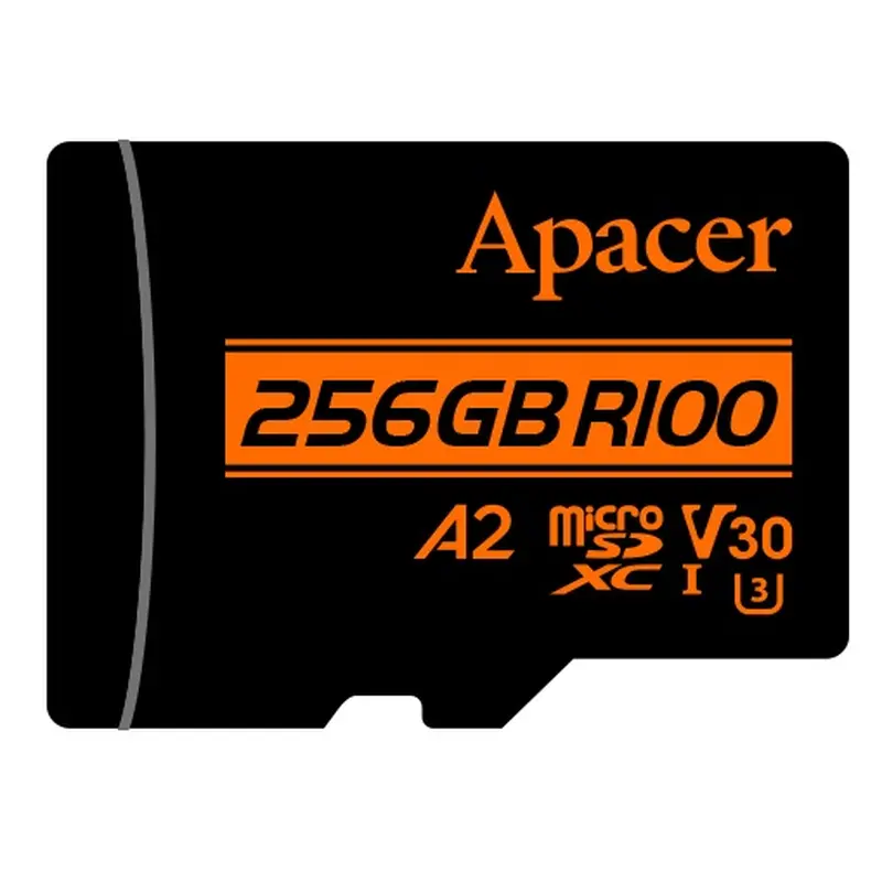 Відповідає останньому сертифікаційному стандарту SD Association Application Performance Class A2, забезпечуючи мінімальну продуктивність довільного читання 4000 IOPS та продуктивність довільного запису 2000 IOPS, а також швидкість послідовної передачі не менше 10 МБ/с. Оптимізований спеціально для мобільних пристроїв, щоб прискорити швидкість запуску програм, забезпечити кращу продуктивність довільного доступу та виконання, прискорити програми, що зберігаються на картах пам’яті, пропонує користувачам швидшу роботу та плавніше мобільне життя. Плавний запис У порівнянні зі звичайними картами пам'яті, картка Apacer, класу Video Speed, пропонує більш стабільну швидкість запису, щоб забезпечити безперервність під час зйомки, без таких проблем, як випадання кадру або втрата даних. Карта призначена для пристроїв, які захоплюють безперервні зображення, наприклад, для таких пристроїв, як відеоспостереження. З Apacer будь-яку інформацію можна записати Карта пам'яті Apacer V30 A2 призначена для домашнього використання, наприклад, для збереження записів з відеореєстратора та систем віддаленого моніторингу в реальному часі. Вона ідеально підійде для зберігання зображень та доступу до них. Завдяки великому обсягу проблему браку вільної пам'яті буде вирішено. Жодного кадру не втрачено, тому ваша сім'я зможе спати спокійно, знаючи, що вони в безпеці. Розроблено для запису відео 4K Карта пам'яті Apacer SDXC/SDHC UHS-I U3 V30 A2 призначена для запису відео 4K та підтримує пакетний режим. З максимальною швидкістю читання 100MB/s, час передачі файлу значно скорочується. Висока швидкість запису Карта пам'яті V30 A2 відповідає останнім стандартам UHS Video Speed Class 30 (V30) SD Association. Запис із мінімальною швидкістю 30 МБ/с, з підтримкою 4K Ultra HD, 3D-відео та пакетного режиму.