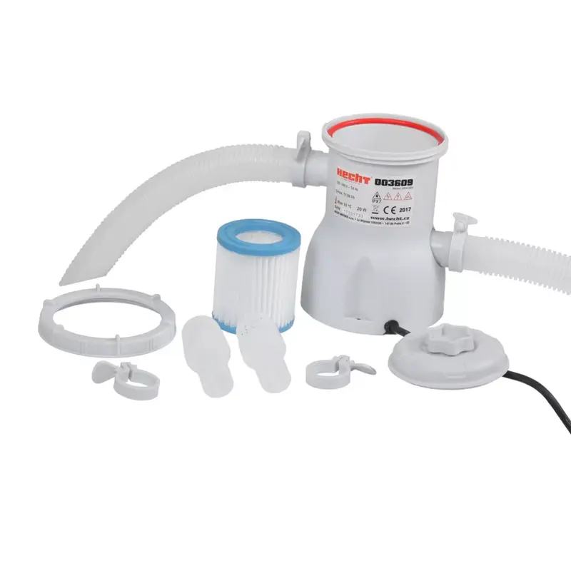 Картриджна фільтрація підходить для невеликих басейнів. Швидкість 1,2 м3/год. Оскільки рекомендовано, щоб установка фільтрувала весь об’єм басейну принаймні один раз кожні 6-8 годин, то така фільтрація підходить для басейнів об’ємом до 7000 л, тому вона ідеальна, наприклад, для HECHT 3609 басейн BLUESEA.