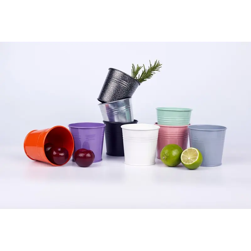 Металеві кашпо і вазони можна використовувати як для будь-яких букетів квітів, так і в якості горщика для посадки квітів. А також для створення флористичних композицій і різної творчості. Цю продукцію виконано в базових і акцентних кольорах, вона характеризується глянцевою поверхнею і різноманітністю розмірів і забарвлень. Є маленькі на 50мл, 0.5л, 1л, 2л, а також середні та великі від 3л до 13л.