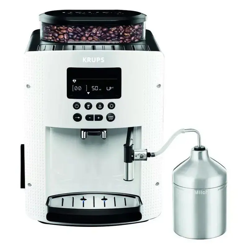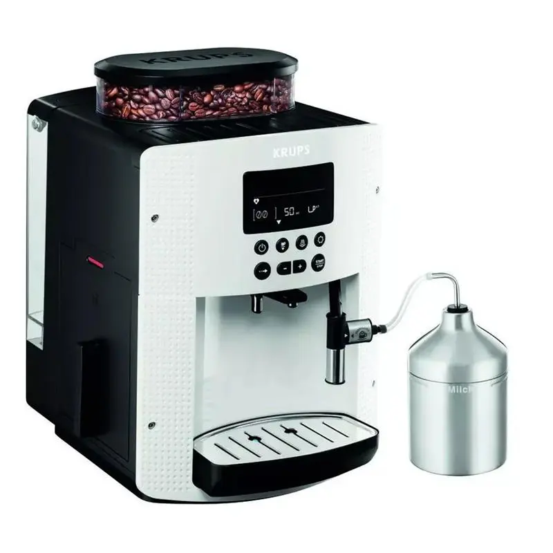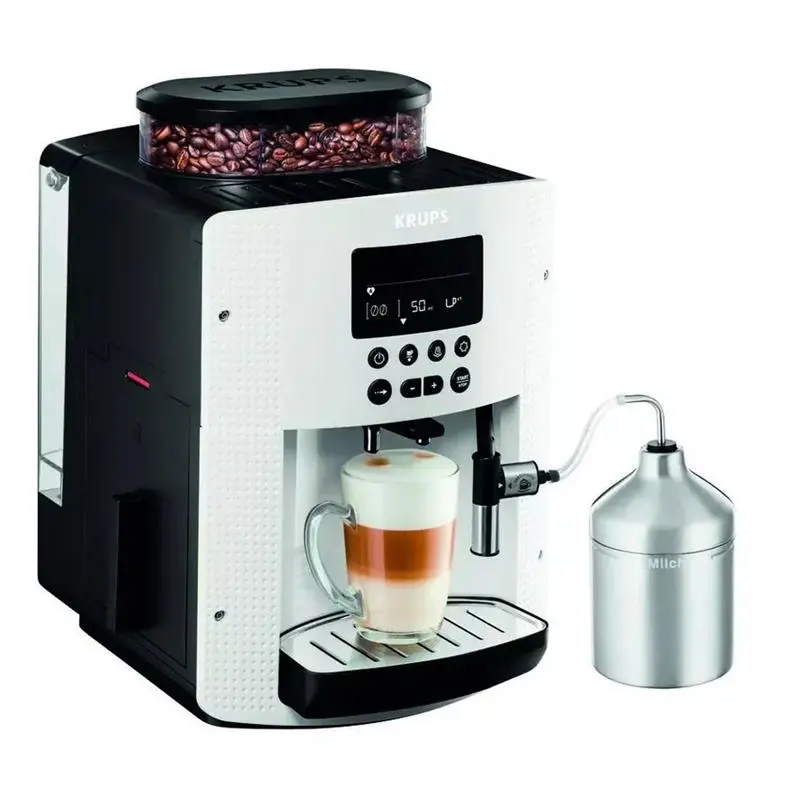 Насолоджуйтесь ідеальним еспресо з легкістю За патентована система компактного термоблока KRUPS, оснащена передовими технологіями, вловлює справжній смак кави в чистому вигляді, створюючи безкомпромісну каву й еспресо, наповнену смаком і ароматом. Великий LCD-дисплей Інтуїтивно зрозумілий і зручний для користувача великий LCD-дисплей дозволяє легко освоїти цю автоматичну кавоварку для повного контролю над вашими кавовими напоями. Контроль температури та помелу Контроль ступеня помелу дозволяє отримати ідеальну консистенцію бажаного напою, від насиченого еспресо до кави лунго, з бездоганним контролем температури для видатних результатів. Великий контейнер для зерен Насолоджуйтесь найкращим з обох світів, з усією зручністю компактного дизайну без компромісів по ємності, з ємністю для зерен на 260 г і контейнером для води 1,7 л. Зберігайте улюблені рецепти Зручний режим пам’яті забезпечує зручний процес, що дозволяє зберігати два різні рецепти напоїв, зберігаючи ваші оптимальні налаштування кави для ідеальних результатів щоразу. Авто капучинатор XS6000 Авто капучинатор XS6000, який входить у комплект поставки, дозволяє приготувати смачні капучино та лате.