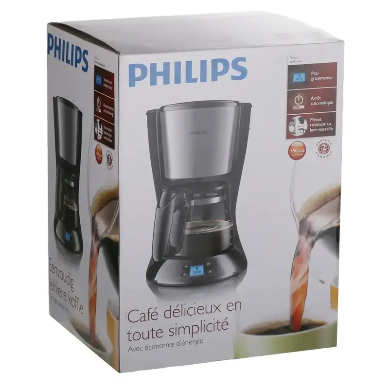 Незрівнянний аромат свіжозвареної кави вранці Кавоварка Philips оснащена вбудованим таймером: просто підготуйте прилад, встановіть час увімкнення та насолоджуйтесь ароматом свіжозвареної кави вранці. Інноваційний індикатор рівня води Щоб зручно стежити за об'ємом води в резервуарі, Philips розробила інноваційний індикатор. Система "крапля-стоп" Система "крапля-стоп" дозволяє в будь-який момент перервати приготування та налити в чашку ароматну каву. Автовідключення через 30 хвилин Відповідно до регламенту ЄС, що застосовується для всіх кавоварок, що випускаються в Європі, з метою безпеки та економії енергії кавоварка вимикається автоматично через 30 хвилин після приготування напою. Зручність очищення Для зручного очищення всі деталі цієї кавоварки Philips можна мити в посудомийній машині.