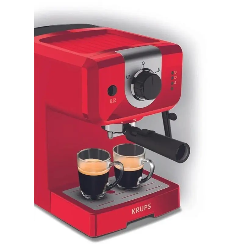 Насолоджуйтесь прекрасною ароматною кавою завдяки ріжковій кавомашині Krups Opio XP320530. Ручне налаштування Регульовані ручні налаштування дають високу ступінь контролю та точності під час приготування напоїв. Парова насадка для ідеального капучіно Відкрийте для себе неперевершене капучіно з піною потрібної консистенції, не виходячи з дому. Одинарний або подвійний еспресо Виберіть утримувач фільтра на одну або дві чашки для одинарного або подвійного еспресо та відкрийте для себе ідеальний баланс фортеці на будь-який смак. Аксесуар для ідеального еспресо Подвійний аксесуар для трамбування забезпечить ідеальний результат у чашці, а вбудована мірна ложка дозволить контролювати смак за допомогою точних пропорцій. Бак для води великої ємності Бака для води 1,5 л достатньо для того, щоб випити каву всією більшою родиною або компанією відразу і ніхто з близьких не терпітиме в очікуванні, щоб отримати свій напій.