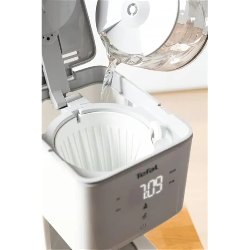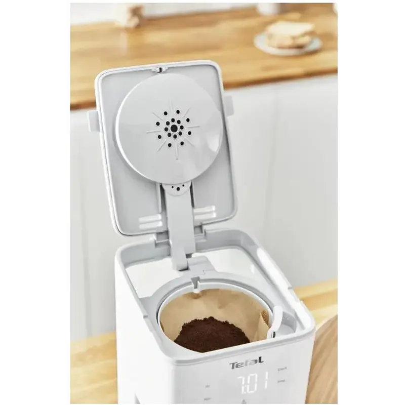 Відкрийте для себе практичну та зручну кавоварку Sense CM693110 від Tefal. особливості: Цифровий екран з індикацією часу та сенсорними кнопками. Велика крапельна насадка забезпечує ідеальне рівномірне заварювання в найкоротші терміни для ароматної кави щодня. Зберігайте каву теплою протягом 30 хвилин з функцією автоматичного відключення для максимальної зручності та спокою. Сенсорні кнопки зручні та інтуїтивно зрозумілі у використанні. Функція AROMA забезпечує насичений аромат кави завдяки попередній інфузії перед заварюванням. Місткість 1.25 л ідеально підходить як для повсякденного використання, так і для великої компанії гостей, дозволяючи приготувати смачну каву для всієї родини. Легко заливати воду та мелену каву завдяки зручному доступу до резервуару для води та утримувачу фільтра. Завдяки цій функції ви можете наливати каву будь-якої миті, навіть під час циклу заварювання без ризику проливання. Запрограмуйте початок циклу заварювання на обраний вами час – до 24 годин – для зручності та насолоди свіжозавареною кавою, яка чекає на вас, відразу після пробудження.