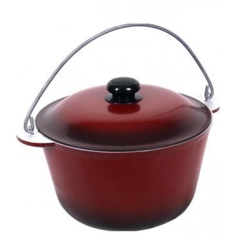 Забезпечений кришкою і металевою дужкою для підвішування над вогнем.