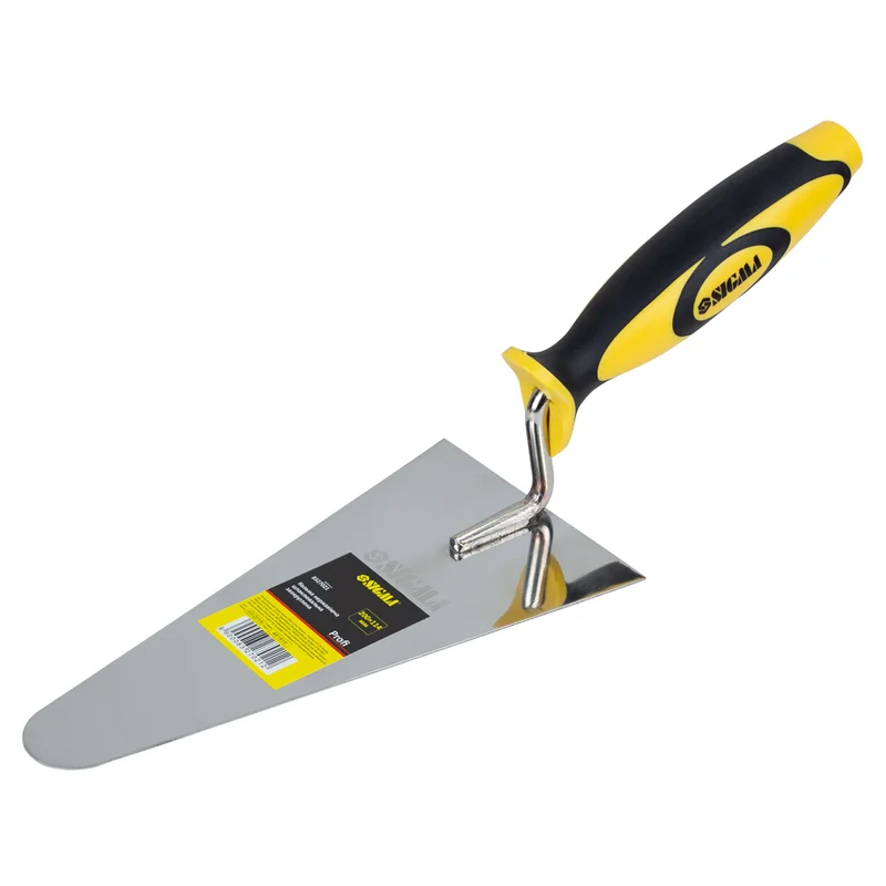 Кельма нержавіюча шпаклювальна закруглена Profi 200×114мм SIGMA (8327021) призначена для розмішування, відмірювання та нанесення будівельних гіпсових або цементних розчинів на різні поверхні.