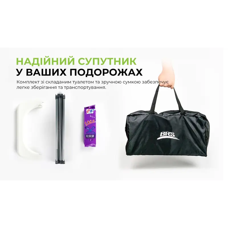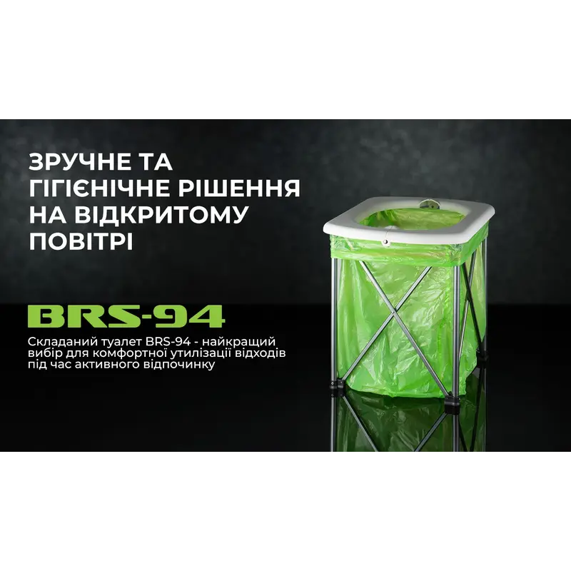Складаний туалет BRS-94 — це просте та зручне рішення для тих, хто проводить багато часу на відкритому повітрі. Модель буде корисна в тому числі для туристів, рибалок, мисливців та інших користувачів, які потребують ефективного способу утилізації відходів, коли немає доступу до стаціонарного туалету.