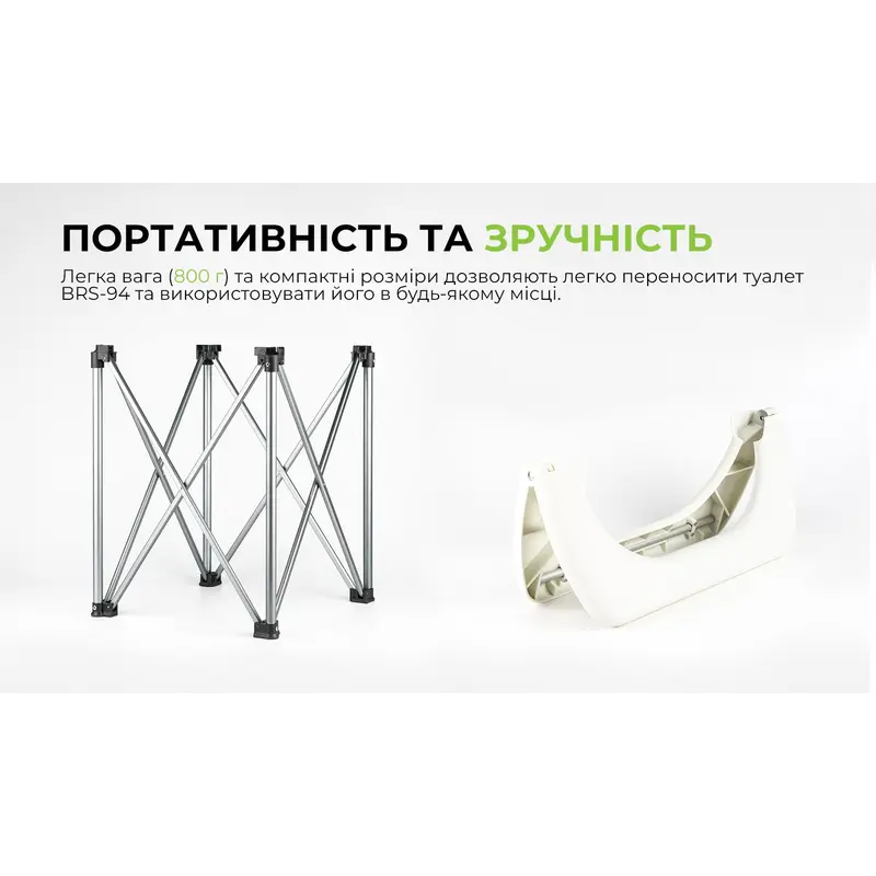 Завдяки компактності і легкій вазі, що дорівнює 800 грамам, туалет BRS-94 можна легко переносити і використовувати у будь-якому місці, де потрібен тимчасовий туалет.