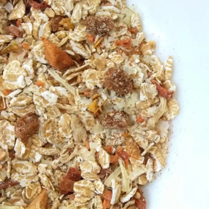Склад: рисові пластівці, пшеничні, картопляні пластівці, джерки (в'ялена свинина) 14%, цибуля, морква, помідор, яблуко, паприка, уцхо-сунелі, хмелі-сунелі, часник, сумах, Сванська сіль, чабер, сіль, перець чорний.