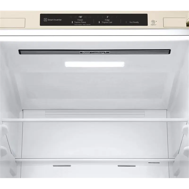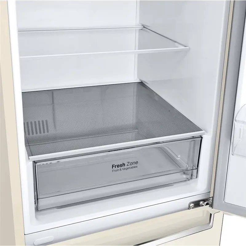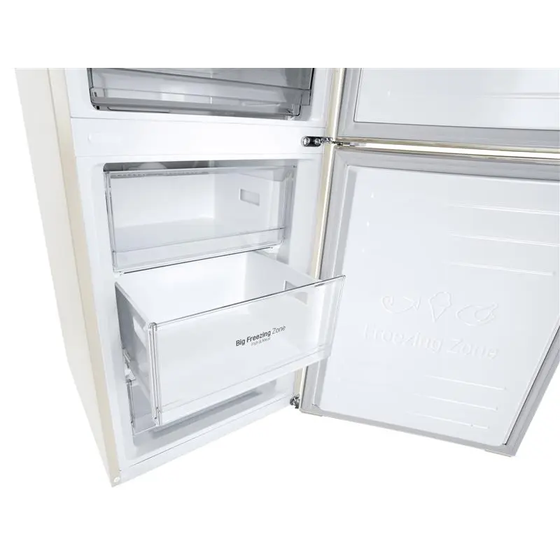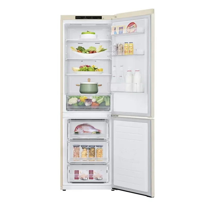 Тиха робота Рівень шуму у нових холодильниках LG DoorCooling+ 36 дБ, що на 25% нижче, ніж у попередніх моделях. Безшумна та надійна робота, щоб нічого не порушувало вашого спокою вдома. Технологія DoorCooling+ Технологія DoorCooling+ довше зберігає свіжість будь-яких продуктів та страв. Smart Inverter компресор Smart Inverter компресор відрізняється економічністю та меншим рівнем шуму в порівнянні з моделями зі звичайним компресором. Клас енергоефективності А++ Холодильник LG з інверторним компресором має рівень енергоефективності А++ та споживає на 32% менше електроенергії. Multi Air Flow Холодне повітря циркулює через усі повітряні клапани та рівномірно охолоджує холодильне відділення. Технологія циркуляції холодного повітря значно покращена порівняно з холодильниками, що працюють за стандартною системою No Frost. Total No Frost Холодильники з технологією LG Total No Frost більше не вимагають розморожування холодильної та морозильної камер. Big Freezing Zone Для ефективного зберігання м’яса та риби в морозильних камерах холодильників LG передбачено окреме відділення. Smart Diagnosis Технологія LG Smart Diagnosis допомагає швидко та правильно виявити проблему в роботі холодильника без необхідності виклику фахівця із сервісного центру додому. Нульовий зазор Удосконалена конструкція дверцят холодильника дозволяє відкривати її під прямим кутом (90°) без виступів за габарити холодильника по ширині і забезпечує легкий доступ до всіх полиць в холодильному та морозильному відділеннях. Навіть на невеликих кухнях двері холодильника не вдаряться об стіни. Технологія контролю напруги Надійна система контролю напруги дозволяє холодильнику LG продовжувати працювати при перепаді напруги від 187 до 253 Вольт. Захист від пікових навантажень до 400 Вольт.