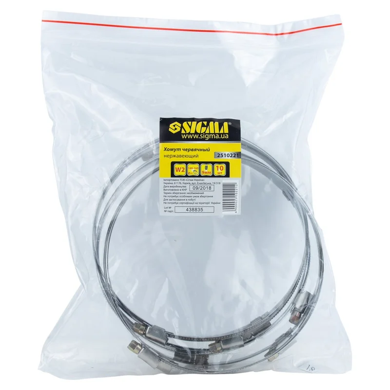 Хомут черв'ячний нержавіючий 9мм D140-160мм 10шт SIGMA (2510221)