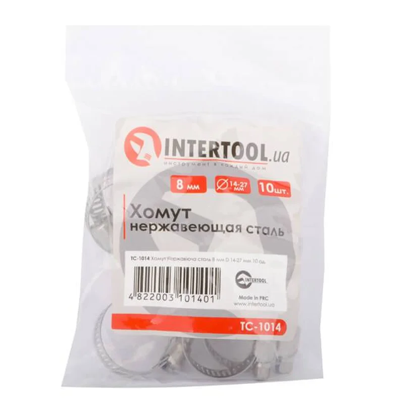 Хомут нержавіюча сталь 8 мм, D - 14-27 мм INTERTOOL TC-1014