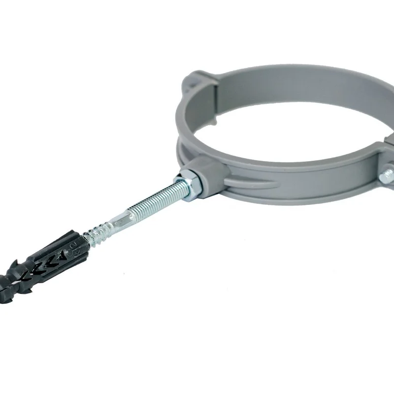 Хомут каналізаційний пластиковий для ПВХ труб призначений для надання жорсткості конструкції та надійної фіксації до стін трубопроводу або каналізаційного стояка.