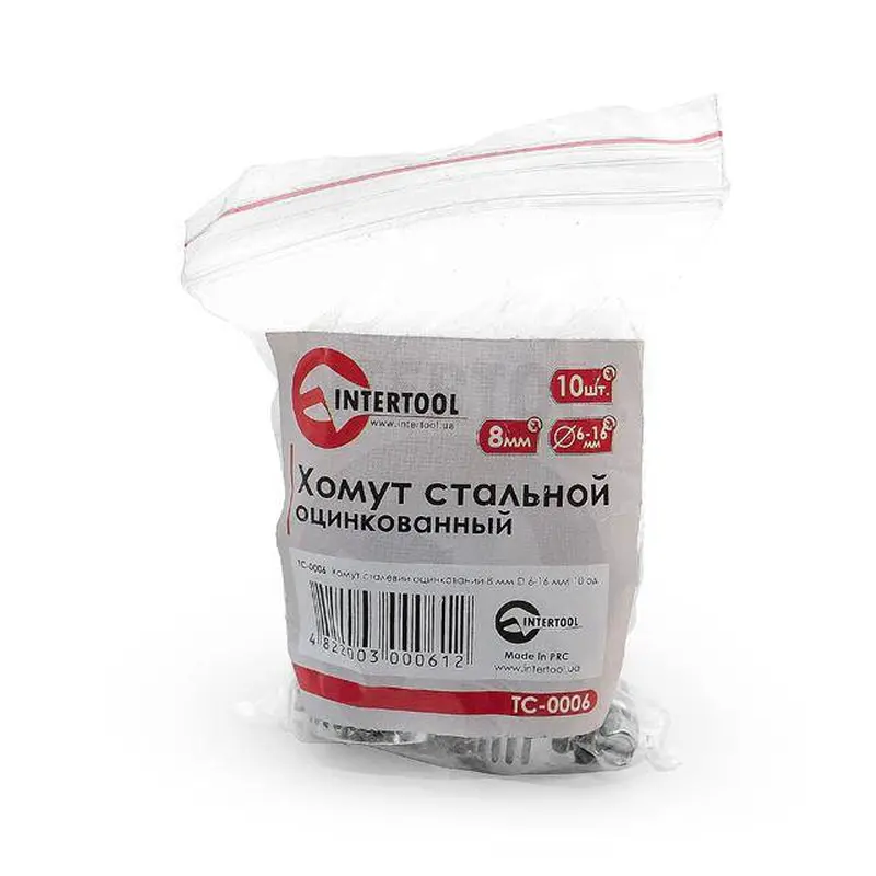 Хомут сталевий оцинкований 8 мм, D - 6-16 мм INTERTOOL TC-0006