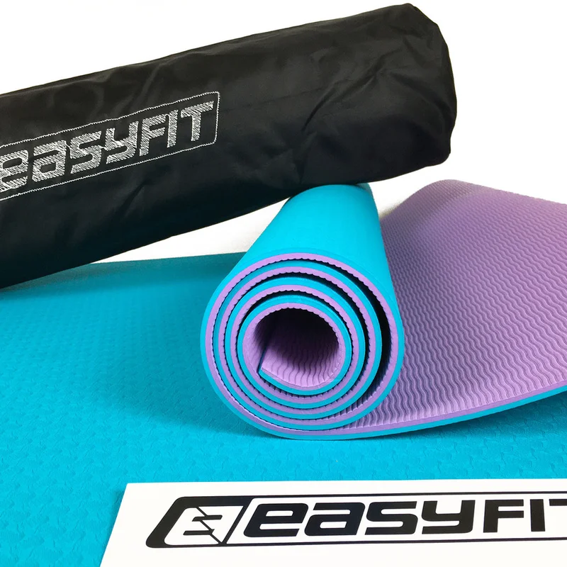 Килимок для йоги та фітнеса EasyFit TPE+TC 6мм двошаровий + Чохол м'ятний з фіолетовим