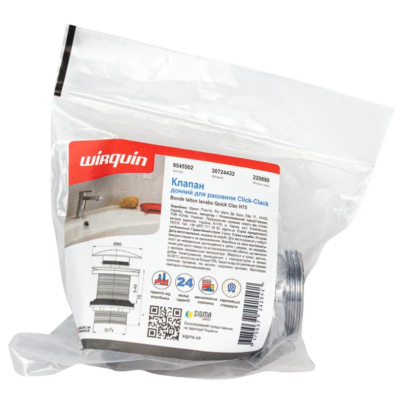 Клапан донний для раковини Click-Clack 1¼" 75мм WIRQUIN (9545502)