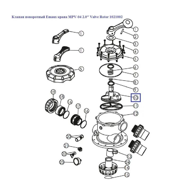 Клапан поворотний Emaux крана MPV-04 2.0" Valve Rotor 1021002.