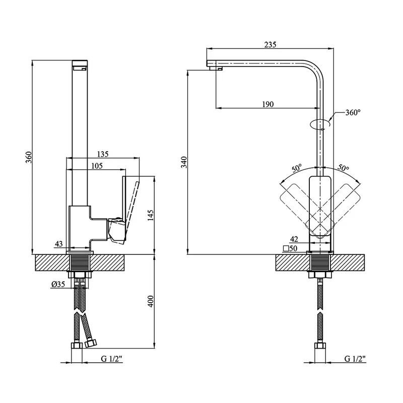 Класичний змішувач для кухні на гайці одноважільний WAL KUB7-A123