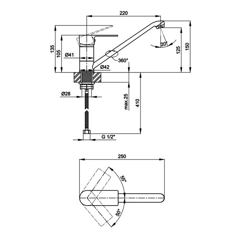 Класичний змішувач для кухні на гайці WAL BOU7-X146