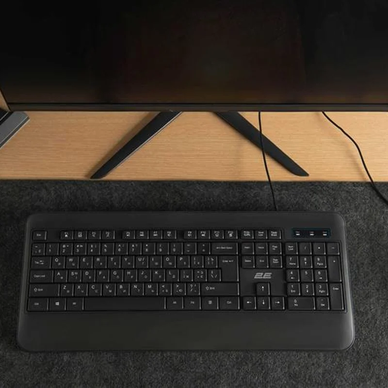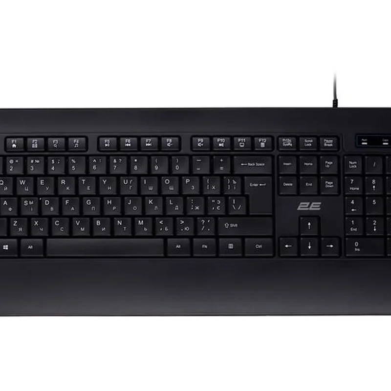Дротова мембранна клавіатура 2E-KS109UB ідеально підійде користувачам, які не люблять тримати зап’ястя у висячому положенні. Завдяки широкому нижньому краю клавіатури, вам не доведеться напружувати зап’ястя, а друк стане максимально комфортним. 2E-KS109UB - тризонна (повнорозмірна) клавіатура має 104 клавіши. Оснащена медіаклавішами, розташованими на клавішах F1-F12, які активізуються за допомогою клавіші «Fn». Низький профіль клавіш робить приємним використання.
