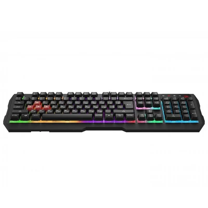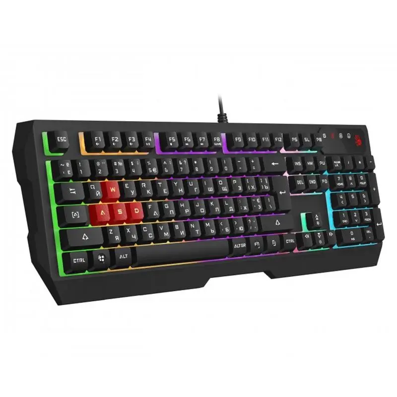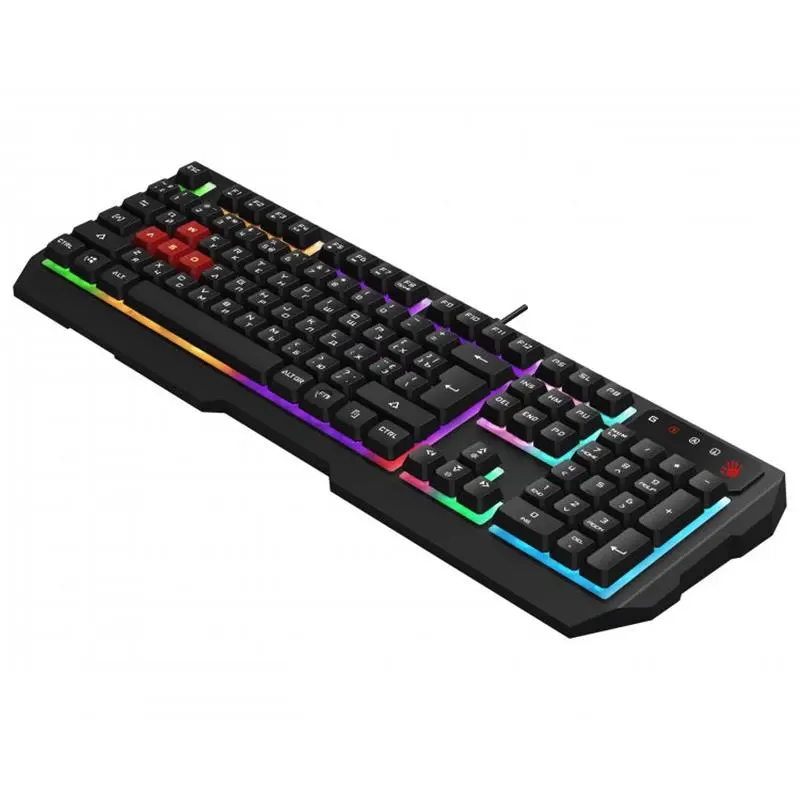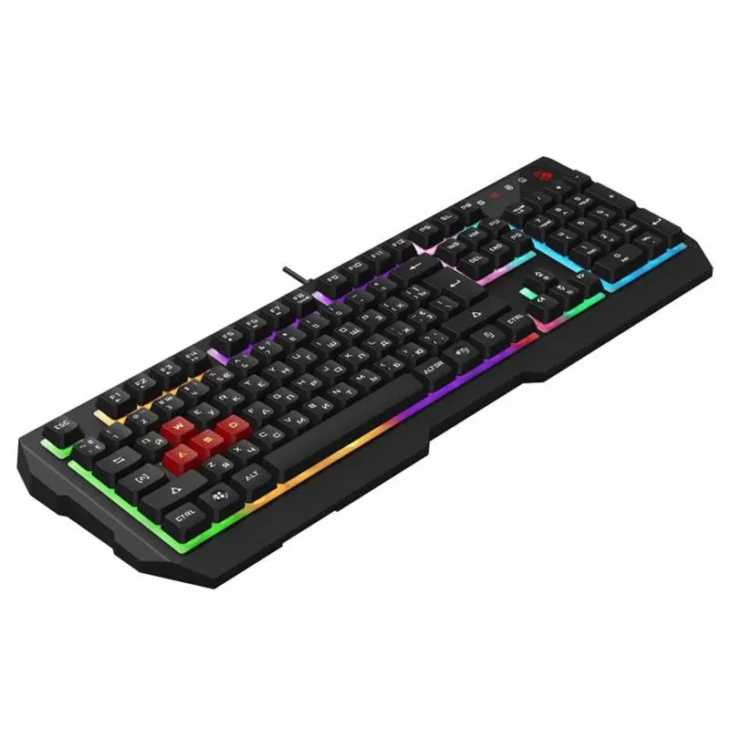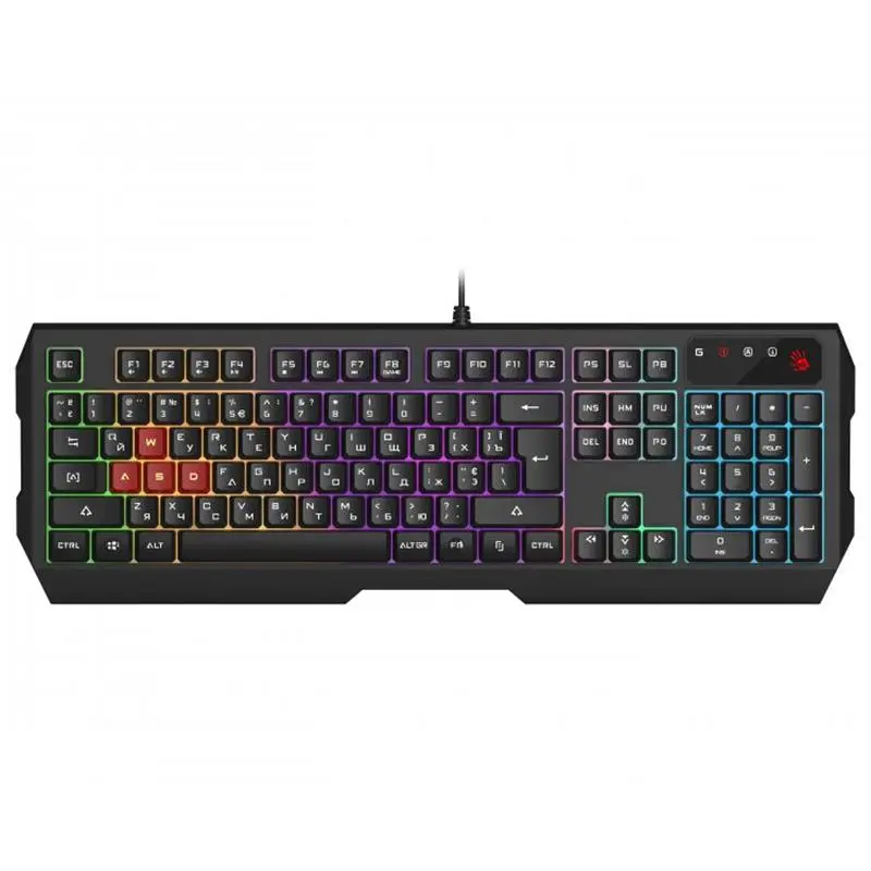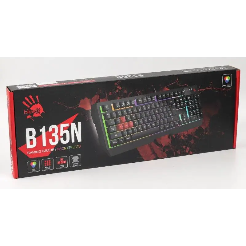 Повнорозмірна ігрова клавіатура з неоновим підсвічуванням. Налаштовуйте комбінації та клавіші під себе за допомогою фірмового ПЗ, насолоджуйтесь неперевершеними ефектами підсвічування та перемагайте у важких матчах! Особливості Регульоване підсвічування. Ефекти підсвічування: FN + F12 (Суцільний / Дихання / Вимк.) Яскравість: FN + ^/v Ігровий режим. Натисніть Fn + F8, щоб вимкнути клавіші Windows 1 мс відгук клавіші. Миттєве виконання гарантується технологією ультраопитування 1000 Гц, що забезпечує надшвидкий час відгуку 1 мс Програмне забезпечення Bloody KeyDominator. Створюйте власні макроклавіші за допомогою програми Bloody KeyDominator, яку можна завантажити на сайті bloody.com Вологозахищена конструкція та міцний USB-кабель в обплетенні – додаткова гарантія довгих років служби Мультимедійні гарячі кнопки. Натисніть FN + F1~F7, щоб використовувати гарячі мультимедійні клавіші. Відключення звуку, гучність -/+, відтворення/пауза, стоп, попередній/наступний трек