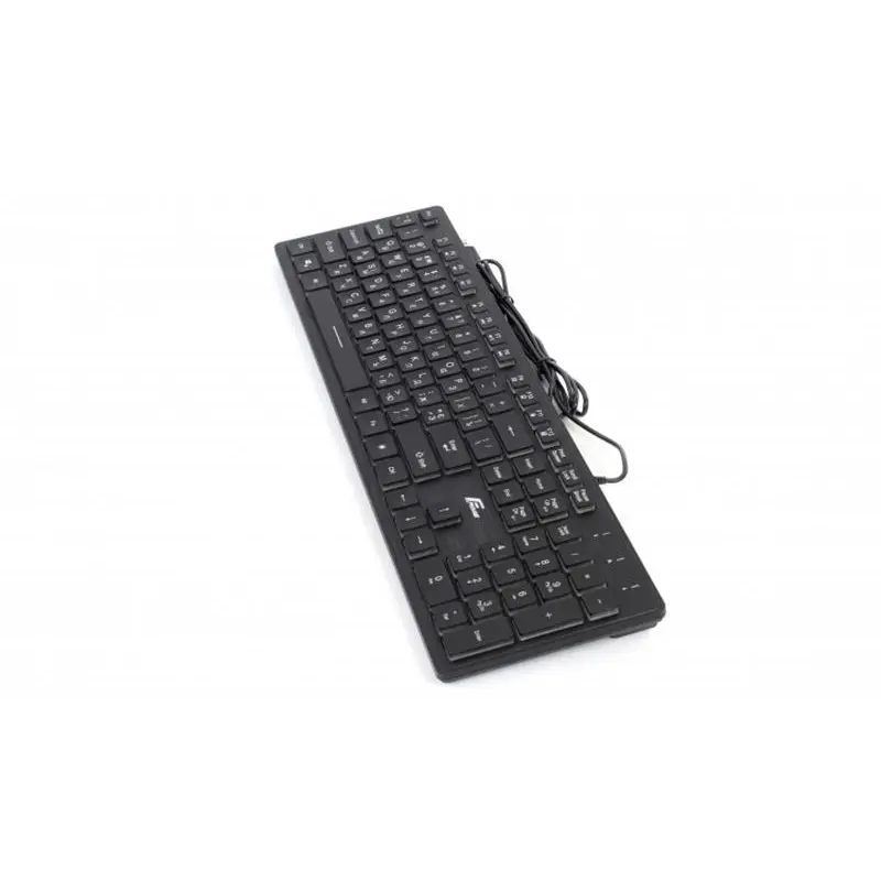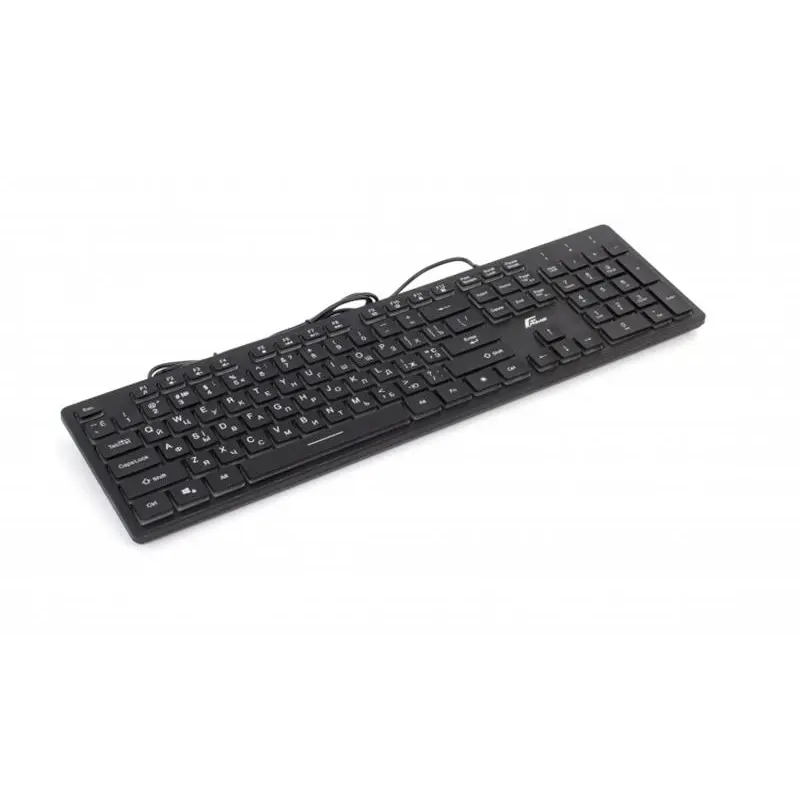 Frime Moonfox - клавіатура, яка має масу переваг і корисних функцій. Вона виконана в класичному дизайні, досить компактна, виготовлена з якісного пластика в чорному кольорі, але головною особливістю цієї клавіатури є блакитне підсвічування, яке полегшить роботу вночі. Також, у неї є 12 клавіш з додатковою функцією при натисненні FN і кабель 180 см Клавіатура оснащена 104 клавішами на мембранних перемикачах. Сумісна з Windows, Mac OS, Linux - тобто практично з більшістю вживаних операційних систем і має підтримку англійської, української і російської розкладки клавіатури. Підключення до комп"ютера здійснюється через USB роз"єм.