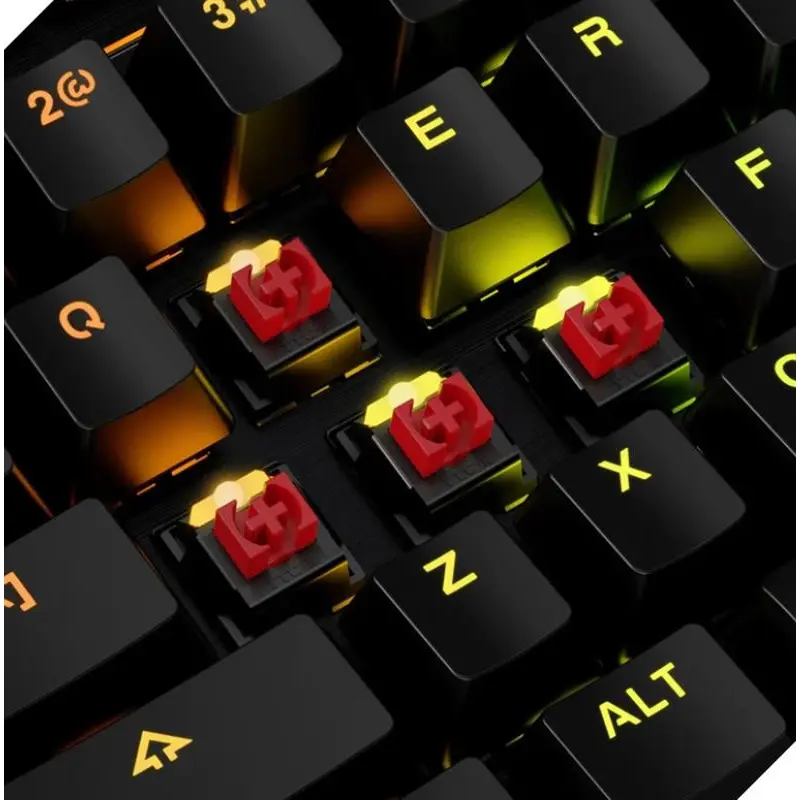 Динамічні світлові ефекти RGB Отримайте сяюче підсвічування кожної клавіші з динамічними ефектами, щоб додати особливість та стиль вашого комп’ютера. Міцна алюмінієва рама Міцна алюмінієва рама Alloy MKW100 розроблена для забезпечення стабільності при швидкому натисканні клавіш. Зручна знімна підставка для зап’ясть Знімна підставка для зап’ясть допомагає знизити втому від тривалих ігрових або робочих сесій. Чутливі та надійні пиленепроникні перемикачі Завдяки пиленепроникним механічним перемикачам, розрахованим на 50 мільйонів натискань, ви отримаєте довговічну та безшумну надійність Alloy MKW100. Міцний плетений кабель, зроблений на совість Позолочений роз’єм USB запобігає корозії, а тканинне обплетення збільшує термін служби кабелю протягом багатьох років надійного використання. Розширене налаштування за допомогою програмного забезпечення HyperX NGENUITY Налаштуйте світлове шоу RGB Alloy MKW100 за допомогою потужного та простого у використанні програмного забезпечення HyperX NGENUITY. Клавіатура провідна HyperX Alloy MKW100 USB Black RUS Повнорозмірна механічна клавіатура HyperX Alloy MKW100 виконана в мінімалістичному дизайні Skeleton і залишає на столі максимум місця для руху мишки. Ефектний та агресивний зовнішній вигляд клавіатури доповнюється яскравим повнокольоровим підсвічуванням з п’ятьма рівнями яскравості та динамічними ефектами, при цьому за допомогою фірмового програмного забезпечення HyperX NGenuity можна налаштувати світло кожної клавіші окремо. Технологія Anti-Ghosting При цьому технологія Anti-Ghosting поширена на всі клавіші, так що жодне, навіть одночасне, натискання або відпускання клавіші пропущено не буде, ну а щоб уникнути випадкового «випадання» з Ігри, клавішу Win можна вимкнути переходом в «Ігровий режим» (Game Mode). Клавіатура зібрана на лінійних пилозахищених механічних перемикачах TTC Red з ресурсом 50 мільйонів натискань. HyperX NGenuity Надійності та довговічності клавіатури служить також алюмінієва рама, на якій вона зібрана. Додатковий комфорт у використанні клавіатури забезпечує підставка для рук, що поставляється з нею в комплекті, яку за бажання можна і від’єднати. Фірмове програмне забезпечення HyperX NGenuity дозволяє не тільки керувати підсвічуванням кожної клавіші, але й задавати різні схеми підсвічування для різних ігор. Особливості: RGB підсвічування з динамічними ефектами та можливістю керування кожною клавішею окремо. Міцна алюмінієва рама. Підставка для рук, що від’єднується. Надійні захищені від пилу механічні перемикачі. Оплетений кабель та позолочений USB роз’єм. Управління за допомогою HyperX NGENUITY.