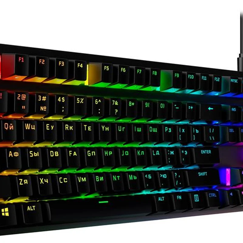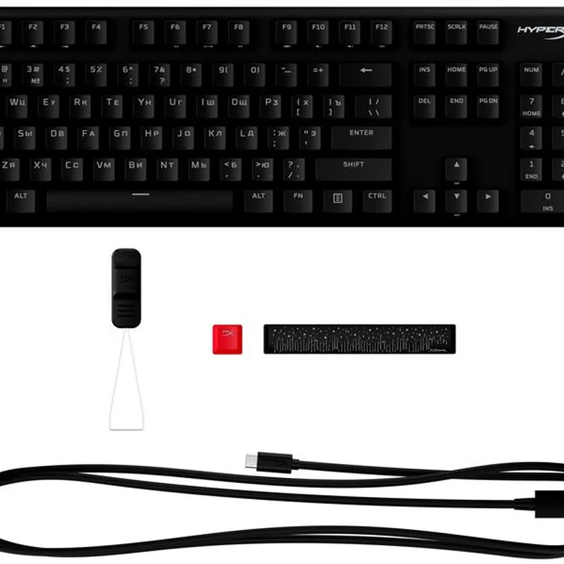 Клавіатура HyperX Alloy Origins Red USB RGB PBT ENG/RU, Black 639N3AA. HyperX Alloy Origins PBT - це компактна, міцна клавіатура зі спеціальними механічними перемикачами HyperX, розроблена для того, щоб дати геймерам найкраще поєднання стилю, продуктивності та надійності. Ця версія збільшує довговічність за рахунок попередньо встановлених накладок клавіш PBT з бічним друком. Механічні перемикачі клавіш HyperX виготовлені з відкритими світлодіодами, тому більше світлового потоку видно, забезпечуючи більш яскраве, приголомшливе освітлення.