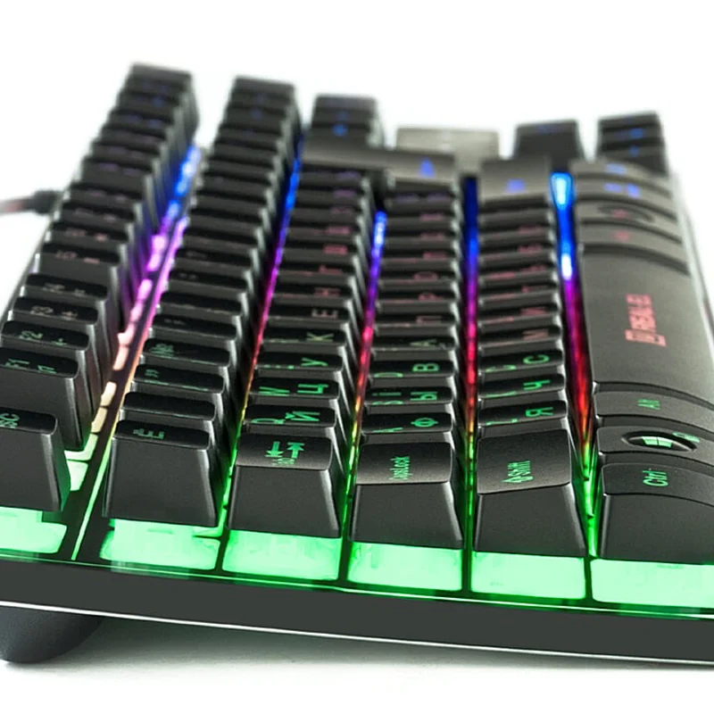 Особливістю ігрової клавіатури REAL-EL GAMING 8710 TKL Backlit є: ергономічний ігровий дизайн, металева основа, знижений шум при роботі, тихий і чіткий хід клавіш, 12 Fn кнопок швидкого доступу до Windows, Інтернету і Мультимедіа, кабель в тканинної оплітці. Багатобарвне підсвічування клавіш з різними режимами яскравості, присутній режим "дихання". Переваги: -Ергономічний ігровий дизайн -Багатокольорове підсвічування клавіш, є режим "дихання" -Металічна основа -Високоякісна мембрана -Комфортний, тихий та чіткий хід клавіш -12 Fn кнопок швидкого доступу до Windows, Інтернету та Мультимедіа. -Кабель в тканинному обплетенні