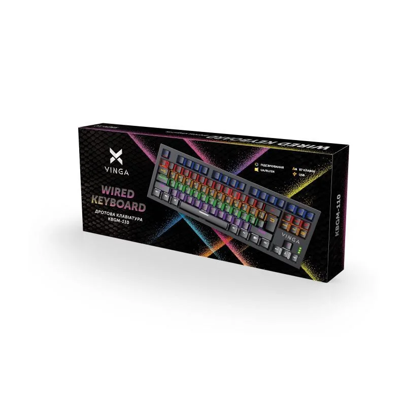 Тип - ігрова, конструкція - механічна, інтерфейс підключення - USB, українська, англійська, російська, Blue Switches, компактна, 87, так, 1.5 м, 363 x 130 x 35 мм, 758 г, чорний