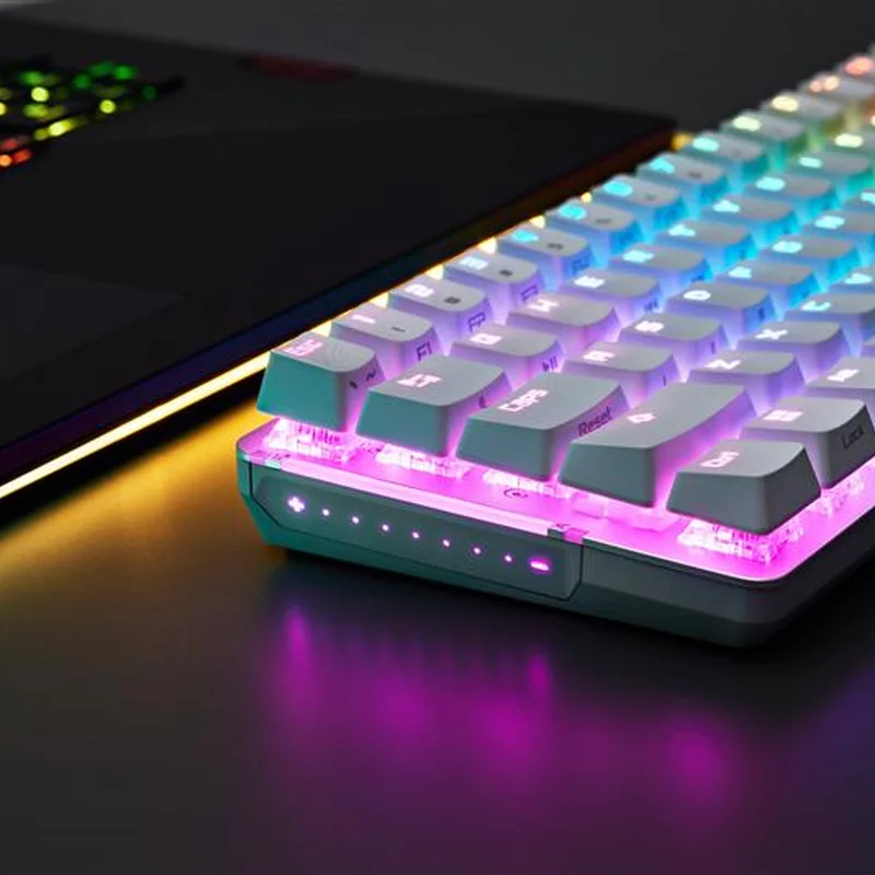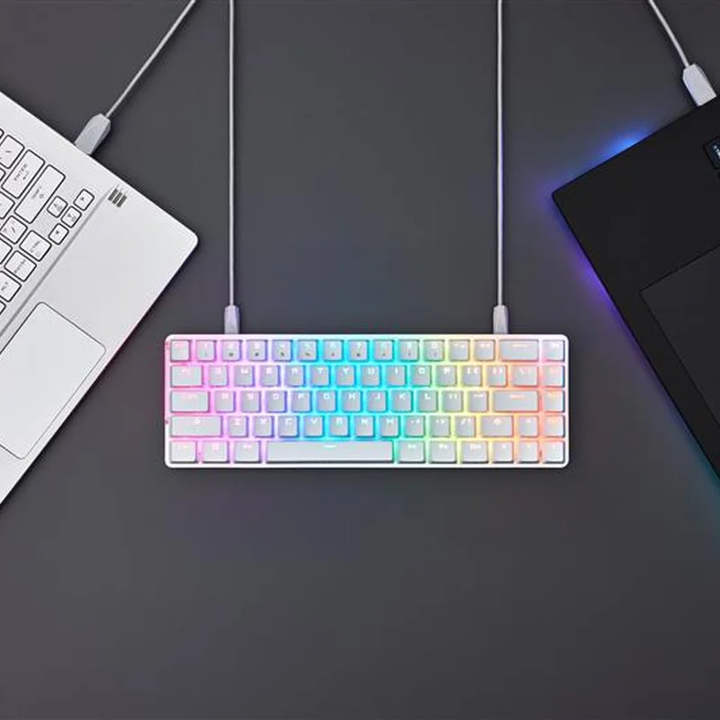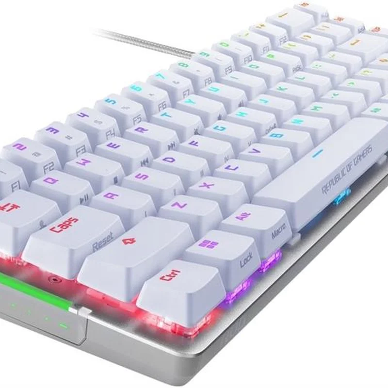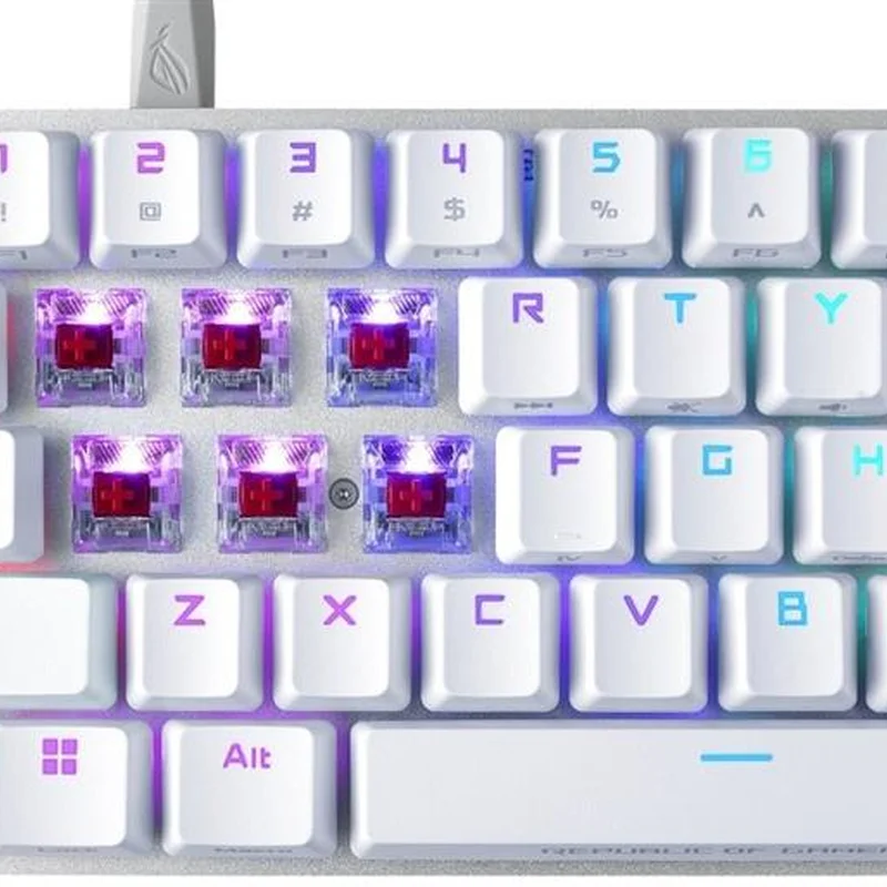 Компактний форм-фактор 65% Команда ROG прагнула створити компактну безкомпромісну клавіатуру, майстерно включивши клавіші зі стрілками та клавіші навігації в 65-відсоткову розкладку клавіатури. А за довжиною всього 306 мм ROG Falchion Ace майже такого ж розміру, як клавіатура на 60%. Він дає вам всі функції звичайної клавіатури, не займаючи багато місця на робочому столі. Готовий до бою Приготуйтеся до бою з клавіатурою ROG Falchion Ace. Ця компактна ігрова клавіатура з форм-фактором 65% може похвалитися інтерактивною сенсорною панеллю та інноваційним двостороннім чохлом, а також механічними перемикачами ROG NX з попереднім мастилом, стабілізаторами ROG та міцними подвійними ковпачками ROG PBT для плаву. Два порти USB-C по обидва боки клавіатури забезпечують акуратне та гнучке налаштування, а три кути нахилу клавіатури забезпечують комфортну гру. Мехінічний перемикач ROG NX Ексклюзивний ігровий перемикач ROG. Налаштований на відмінне відчуття натискання клавіш та узгодженість із швидким спрацьовуванням. Перемикачі мають змащені штоки та базові корпуси, які забезпечують більш плавне відчуття клацання та усувають шум пружини відповідно. Червоний Механічні перемикачі ROG NX Red мають точку спрацьовування 1,8 мм для швидкого введення. Початкове зусилля спрацьовування 40gf допомагає запобігти випадковим натисканням клавіш, а зусилля збільшується до 55gf для ідеального зворотного зв’язку. В результаті натискання клавіш відбуваються миттєво і мають плавне та лінійне відчуття. Коричневий Механічні перемикачі ROG NX Brown мають точку спрацьовування 2 мм, як воліють користувачі традиційних коричневих перемикачів. Тактильне зусилля 58gf у поєднанні з коефіцієнтом натискання 33% забезпечує очевидний, більш виражений тактильний відгук на кожне натискання клавіші. Синій Механічні перемикачі ROG NX Blue мають точку спрацьовування 2,3 мм, стандартний коефіцієнт клацання 16% і кращу ентузіастами тактильну силу 65gf – все це забезпечує надійний і чудовий зворотний зв’язок при кожному натисканні клавіші. Ковпачки ROG PBT Doubleshot Подвійні ковпачки ROG PBT забезпечують унікальне та чудове відчуття, а також забезпечують тривалий термін служби. Конструкція клавіш була оптимізована за рахунок ковпачків середньої висоти та більш короткого стрижня, щоб зменшити коливання клавіш та зробити роботу з ними зручнішою. Стабілізатор перемикача ROG У порівнянні зі стандартними механізмами стабілізації клавіш Falchion Ace має спеціально налаштовані, змащені стабілізатори перемикачів, які значно зменшують тертя при натисканні клавіш, забезпечуючи плавне та стабільне натискання на більш довгі клавіші клавіші пробілу, Shift та Enter. Звукопоглинаюча піна Вбудована піна поглинає шуми та луна для покращення акустики. Інтерактивна сенсорна панель Інноваційна сенсорна панель на лівій стороні Falchion Ace дозволяє зручно регулювати гучність або створювати ярлики для перемикання програм або копіювання та вставки. Його також можна запрограмувати для використання як макроклавіш для більш інтуїтивного керування в іграх. Гнучкість з двома портами Falchion Ace оснащений двома портами USB-C по обидва боки від заднього краю для більш акуратного налаштування, дозволяючи одночасно підключати до двох ПК і швидко перемикатися між ними. Універсальні кути Falchion Ace має дві пари ніжок для клавіатури різної висоти, що забезпечує три ергономі