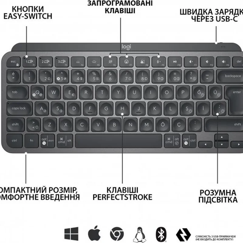 Клавіатура бездротова Logitech MX Keys Mini Wireless Illuminated Graphite (920-010498)