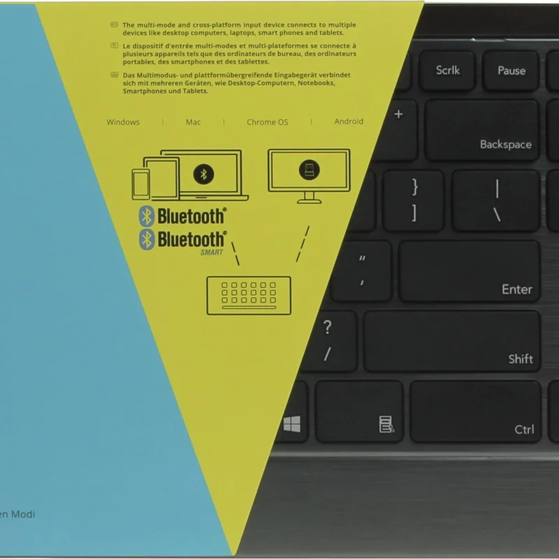 Бездротове з’єднання 2.4 ГГц та Bluetooth Бездротові можливості безперешкодно: розумне перемикання між Bluetooth та 2.4 ГГц забезпечує стабільне бездротове передавання. Ультратонкий корпус Тонкий та міцний: завдяки надтонкій конструкції ця клавіатура привертає увагу.