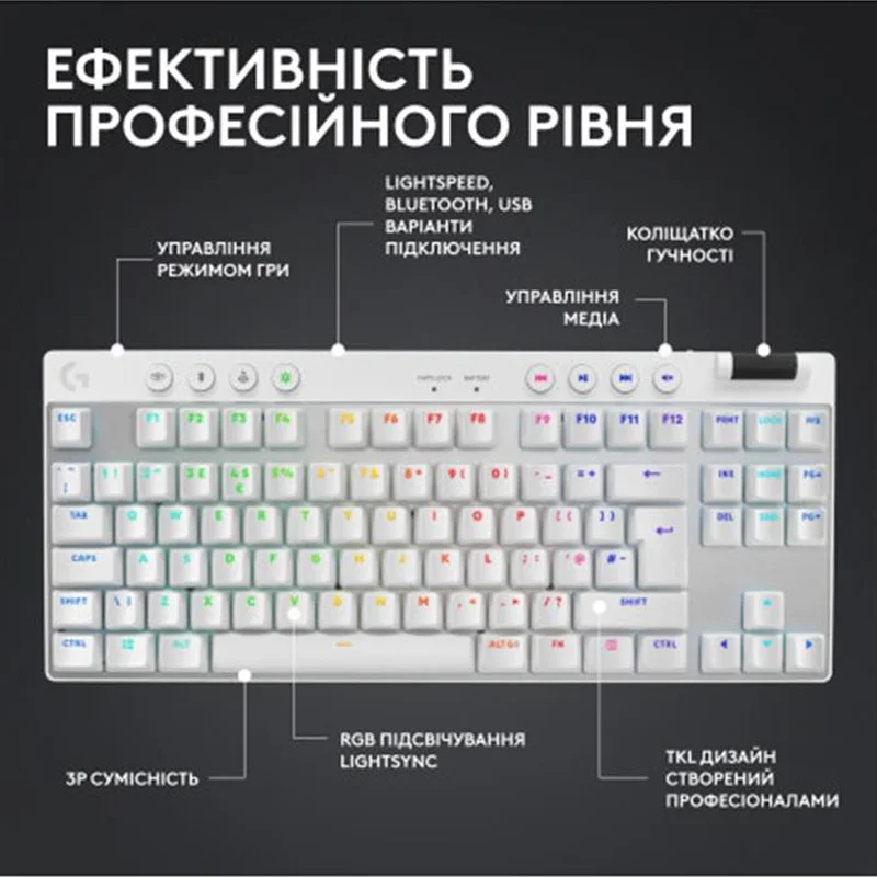 Клавiатура Logitech G PRO X TKL Lightspeed White Tactile (920-012148)